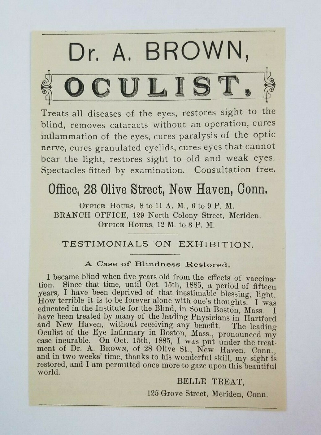 1885 New Haven Connecticut Advertisement Dr A Brown Oculist Eye Doctor Olive St Ebay